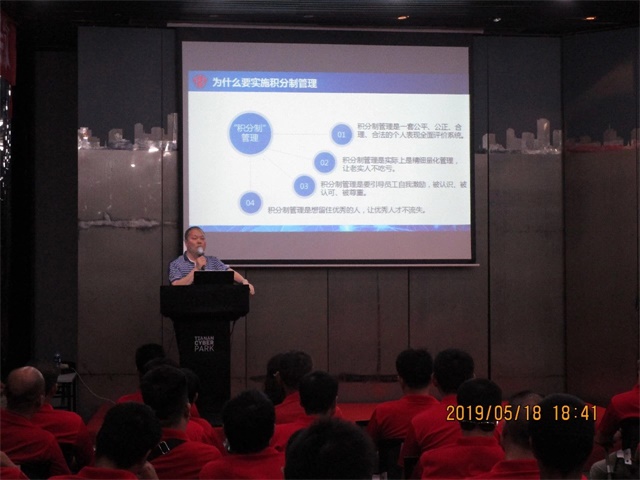陈江先生为大家讲解如何推进积分制管理、试行以及具体实施细则。