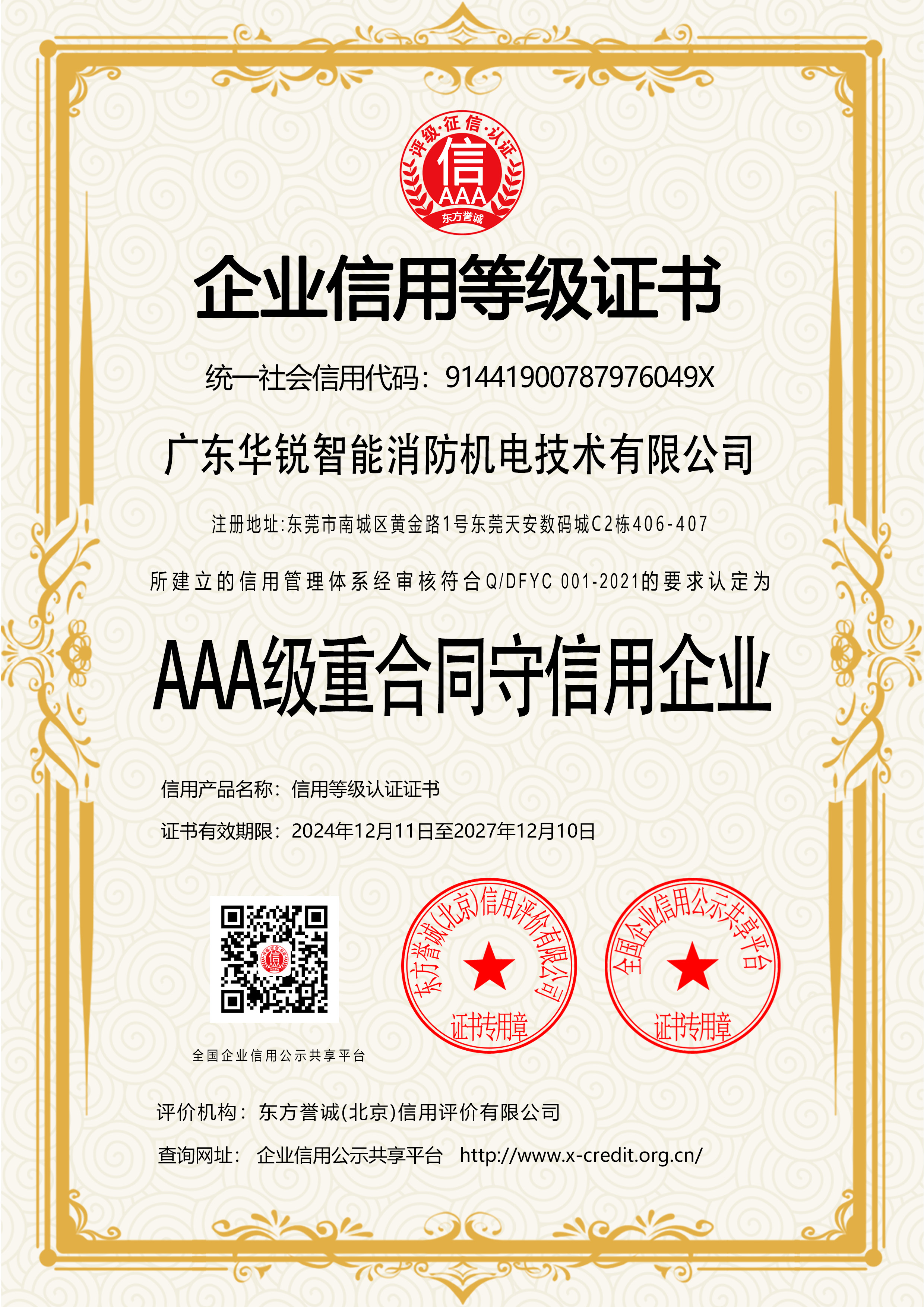 AAA级重合同守信用企业